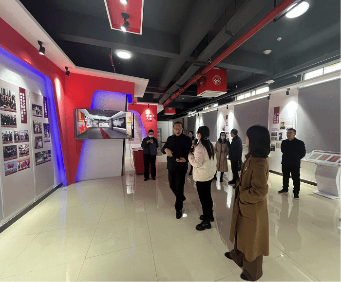 花月一行参观了中国共产党百年党史长廊、影音学习角、庆祝中国共产党成立100周年“印说党史”师生篆刻展、新时代传习所、大学生红色影院、AR互动体验区、思政展厅、中国共产党人精神谱系等展厅和活动区域,体验了“VR王家坝抗洪救援”等虚拟仿真思政课程。