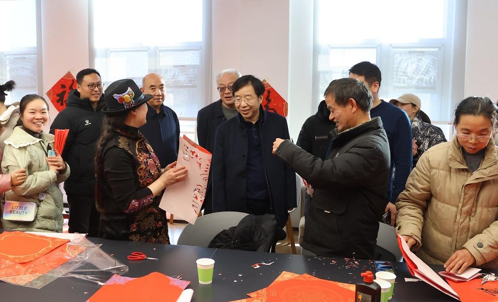 为弘扬中华优秀传统文化,营造喜庆祥和的节日氛围,1月15日下午,我校联合阜阳市书法家协会,组织书法老师和书法爱好者,在学校图书馆开展了2025年“百福迎春 情暖阜幼”送春联文艺活动,通过一幅幅满含深情、承载祈愿的书法佳作,为全校教职员工送上新年美好祝福。阜阳市书法家协会主席王梓梁、副主席任娟、副秘书长梅春林等书法家受邀参加,活动还邀请了国家级剪纸非物质文化遗产传承人葛庭友为大家展示剪纸艺术。校领导董志诚、于华献、陈绪龙现场观摩。