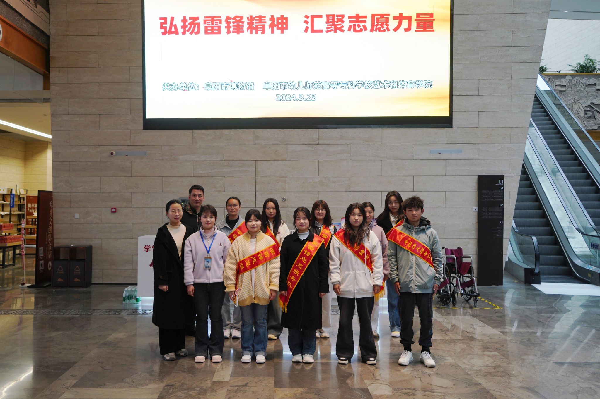 为贯彻落实习近平总书记对深入开展学雷锋活动作出重要指示,书写新时代的雷锋精神,让雷锋精神薪火相传。3月23日上午,由阜阳市博物馆与艺术和体育学院联合开展“弘扬雷锋精神 汇聚志愿力量”践行社会主义核心价值观主题活动。艺术和体育学院共组织40名学生志愿者分组在阜阳市博物馆开展为期两周的志愿服务活动,活动当天艺术和体育学院团总支书记周振国、辅导员崔蓓带队参加。