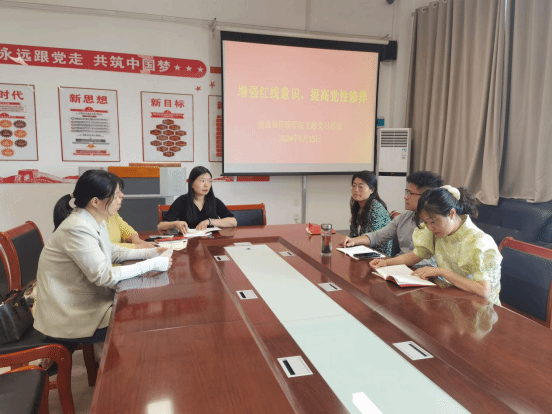 为进一步增强全体党员党性意识,引导党员真正把纪律规矩转化为政治自觉、思想自觉、行动自觉, 5 月 15 日下午,健康和管理学院党总支在至善楼四楼会议室开展党纪学习教育专题会议暨主题党日活动。