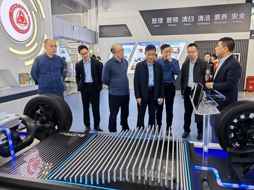 7日上午,汤志一行来到深圳职业技术大学,参观了深职大裕同图文传播产业学院、比亚迪应用技术学院和华为ICT学院,并与深圳职业技术大学校领导座谈交流。座谈中,深圳职业技术大学党委委员、副校长董朝君带汤志一行表示热烈欢迎,他回顾了深职大的发展历程,深度介绍了深职大开展多元主体人才培养模式改革,深入推进校企合作,构建产教深度融合的“深圳经验”。随后,双方就职业教育服务地方经济社会、高等学校转型发展、校院二级管理等话题开展深入交流。
