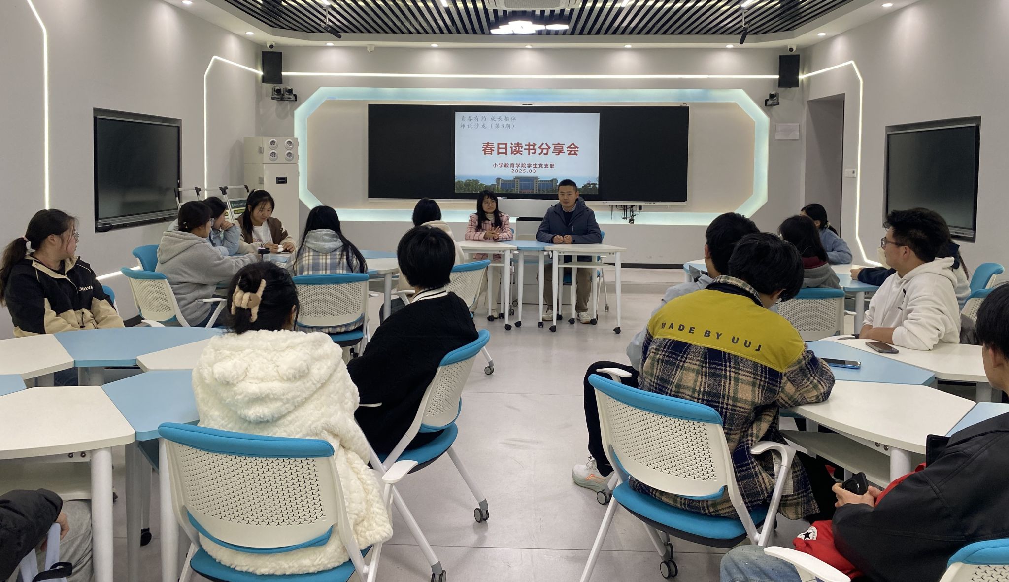 春风有信,花开有期。三月正值春暖花开之际,正是青年学子们沐浴春风、畅游书海之时。为进一步提升师范生专业素养,引导学生在读书中增长智慧,涵养师德,小学教育学院学生党支部发挥支部战斗堡垒作用,于3月12日下午,以春日读书分享会的形式,在文津楼403举行第8期“师说”沙龙。本期活动邀请到了小学教育学院教学秘书宫璐萍老师,活动由支部书记刘磊主持,学院2023级和2024级学生代表参加。