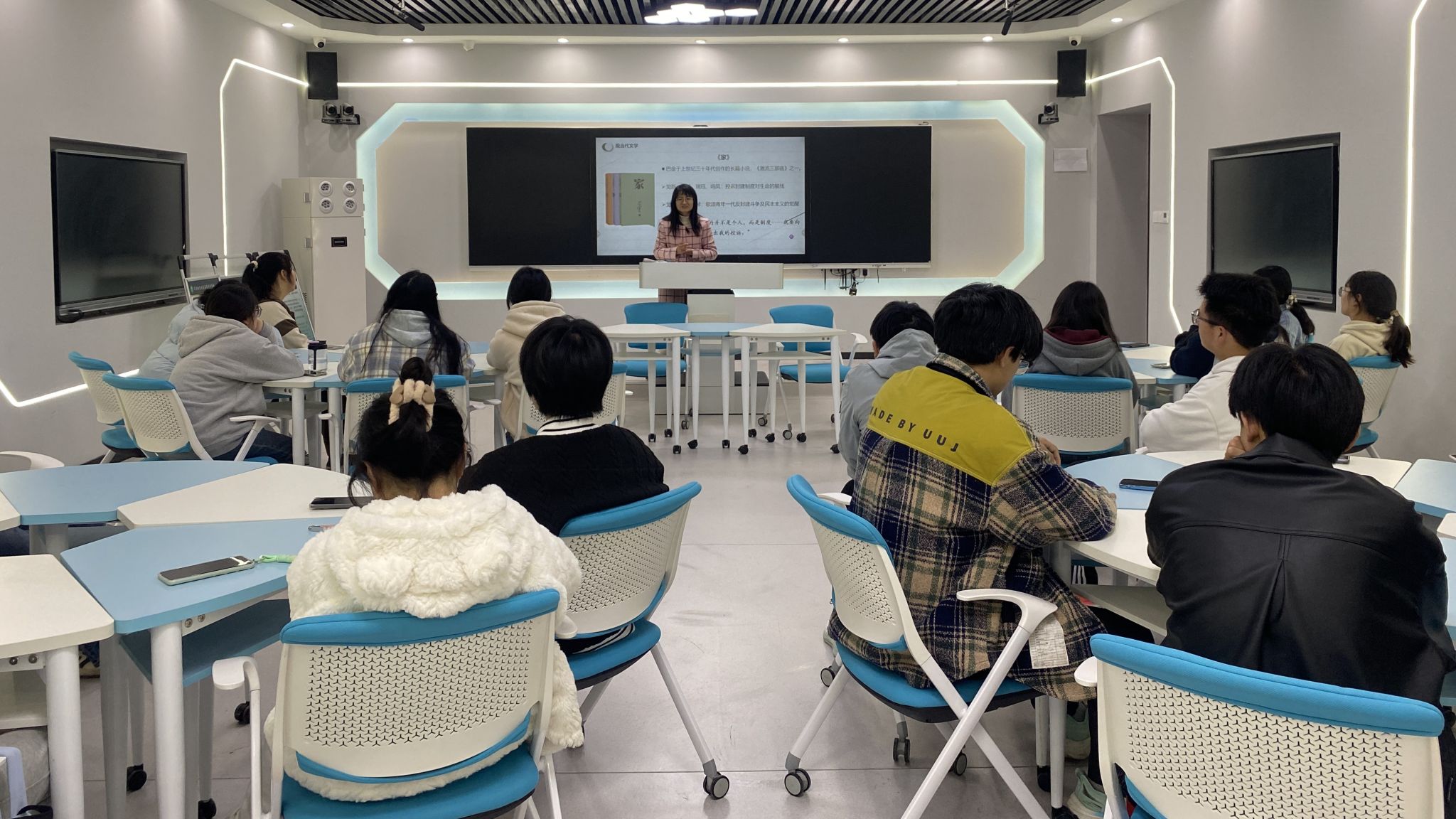 现场书香氛围浓厚,气氛热烈。师生围绕主题畅所欲言,推荐自己心仪的书籍并通过诵读的形式,把喜欢的文段、阅读的感受、推荐的目和对书籍的独到见解与大家分享。宫璐萍以饱满的热情、温和的语调,分享了一系列或与春天、或与自身感悟颇深的书籍。将文学的力量传递给了在场的每一位学生,感受着文学带来的美好与感动。这些真挚的分享不仅展现了她对文学的热爱与执着,让在场学生感受到心灵的触动和启迪,也为大家提供了一个相互启发、共同进步的机会。