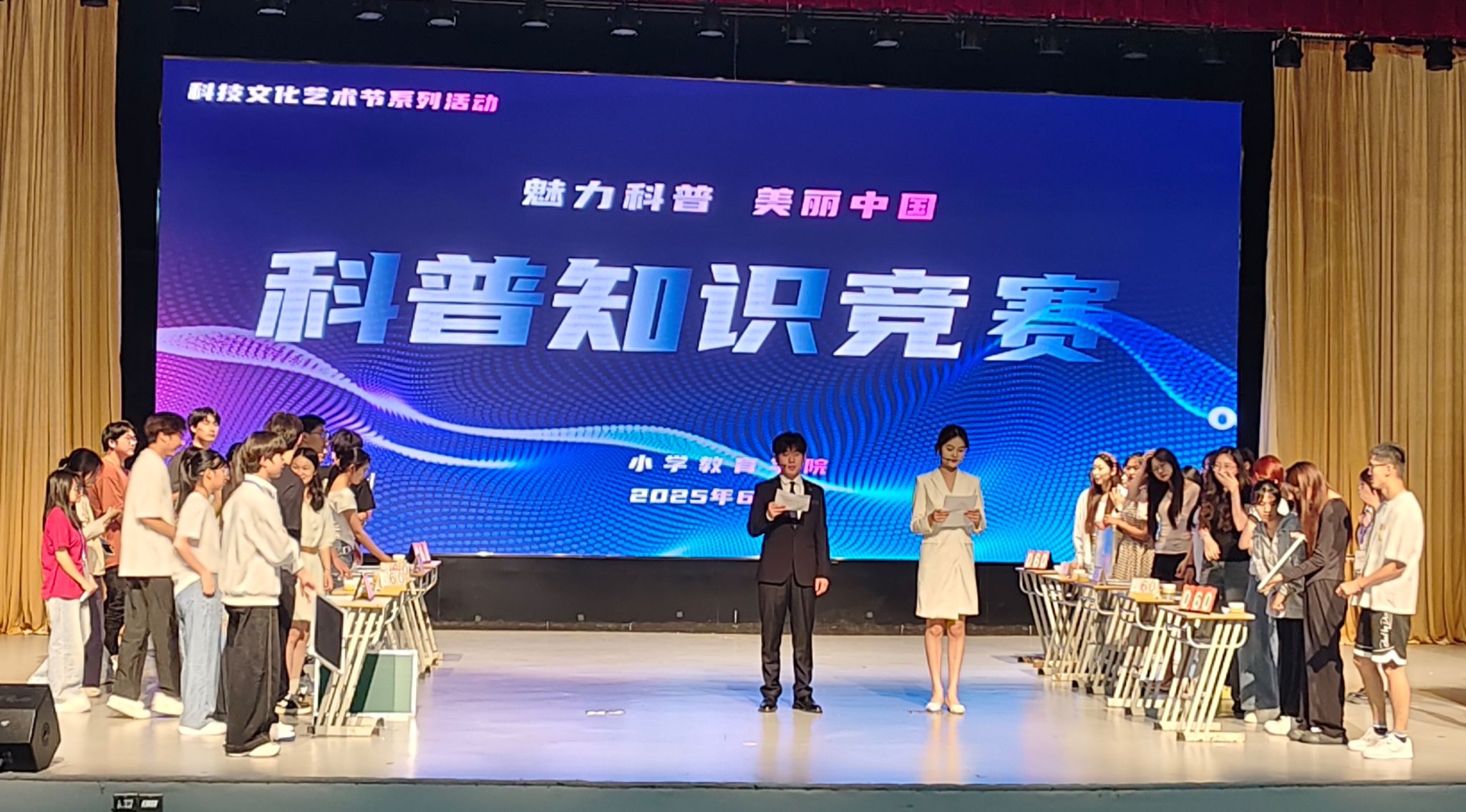 为庆祝第二十五个全国科技活动周,进一步推动科普知识传播,激发学生对科学知识的探索热情,提升学生科技创新素养,小学教育学院于6月4日在德馨楼演播大厅举办了 “魅力科普 美丽中国” 科普知识竞赛决赛。