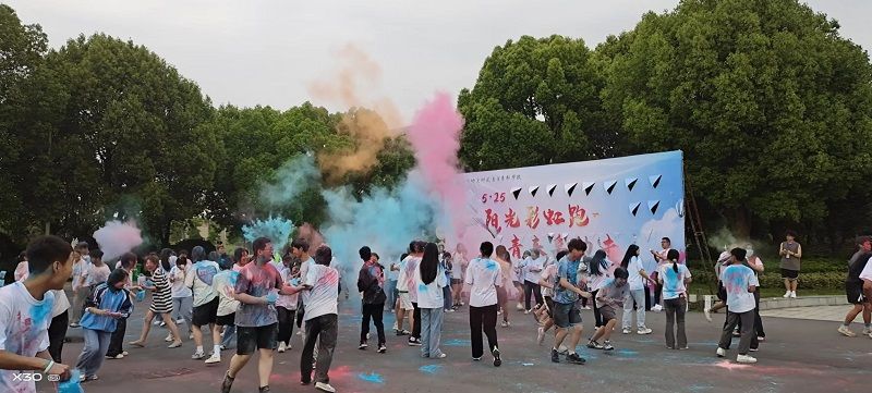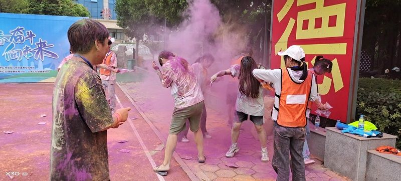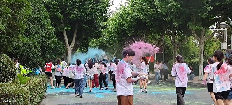 本次活动全程共分为五个彩色站点,依次为起点(南门口)—文津楼—行知楼—至善楼—德馨楼—操场(终点),每经过一个彩色站,工作人员均会向参与者撒播彩粉,以示祝福。