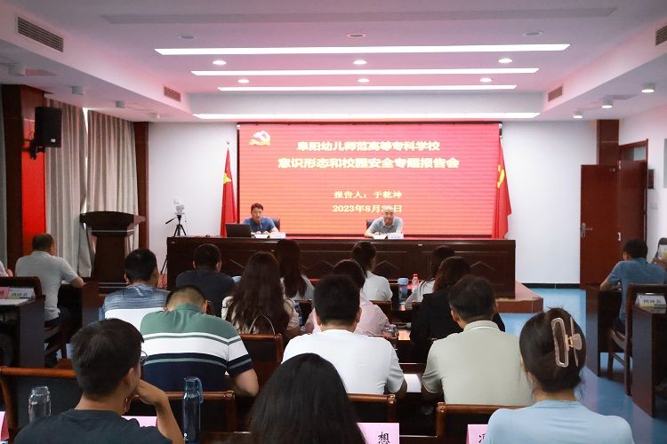 为深入贯彻落实习近平新时代中国特色社会主义思想,进一步巩固我校意识形态阵地管理,筑牢校园安全防线。8月24日下午,市委教育工委委员、教育局副局长于乾坤应邀在我校作意识形态和校园安全专题报告。报告会由校党委副书记于华献主持,各党总支部(直属支部)书记、宣传委员,各学院、部门网评员及2023年新入职人参加报告会。
