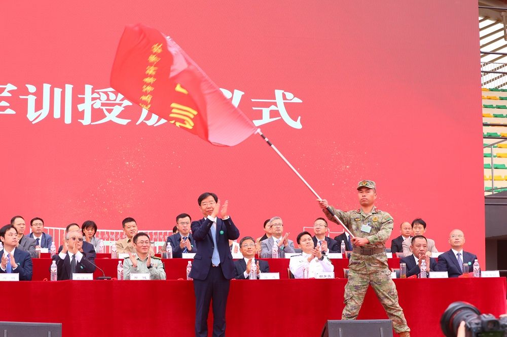 汤志向新同学的到来表示热烈的欢迎,以《厚植家国情怀 书写无悔青春》为题作开学讲话。他指出,阜幼专是历史悠久、薪火相传的百年老校。十年升格高专以来,我校砥砺前行,紧抓改革与发展,成果年年翻新。搬迁岳家湖校区更是开启学校历史新篇章的重要里程碑,新校区、新环境、新气象,未来学校将始终锚定“强内涵、促转型、创双高、升本科”的战略目标,持续推进安徽省地方技能型高水平大学和安徽省“双高”院校建设,奋力书写阜幼专的新篇章。他希望,同学们能明德立志、胸怀家国,在强国有我的担当中展现风采;能追求卓越、与时俱进,在刻苦求真的道路上永不懈怠;能向阳而生、积极乐观,在沉淀自我的过程中坚韧前行;能严于律己、刻苦训练,在完成军训的磨砺中得到淬炼。