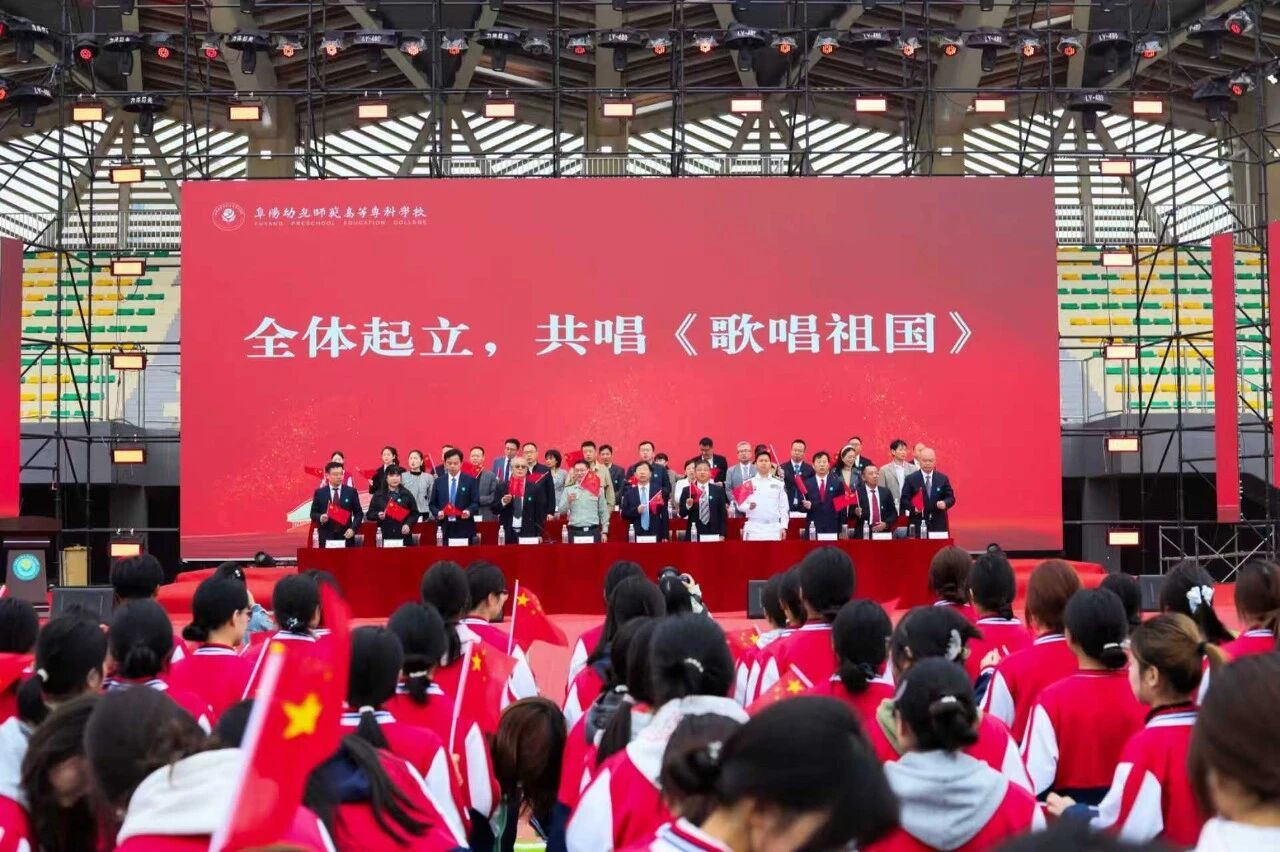 9点50分,开学典礼在庄严的升旗仪式下拉开序幕。全体师生起立,奏唱国歌、校歌,气氛庄重而热烈。