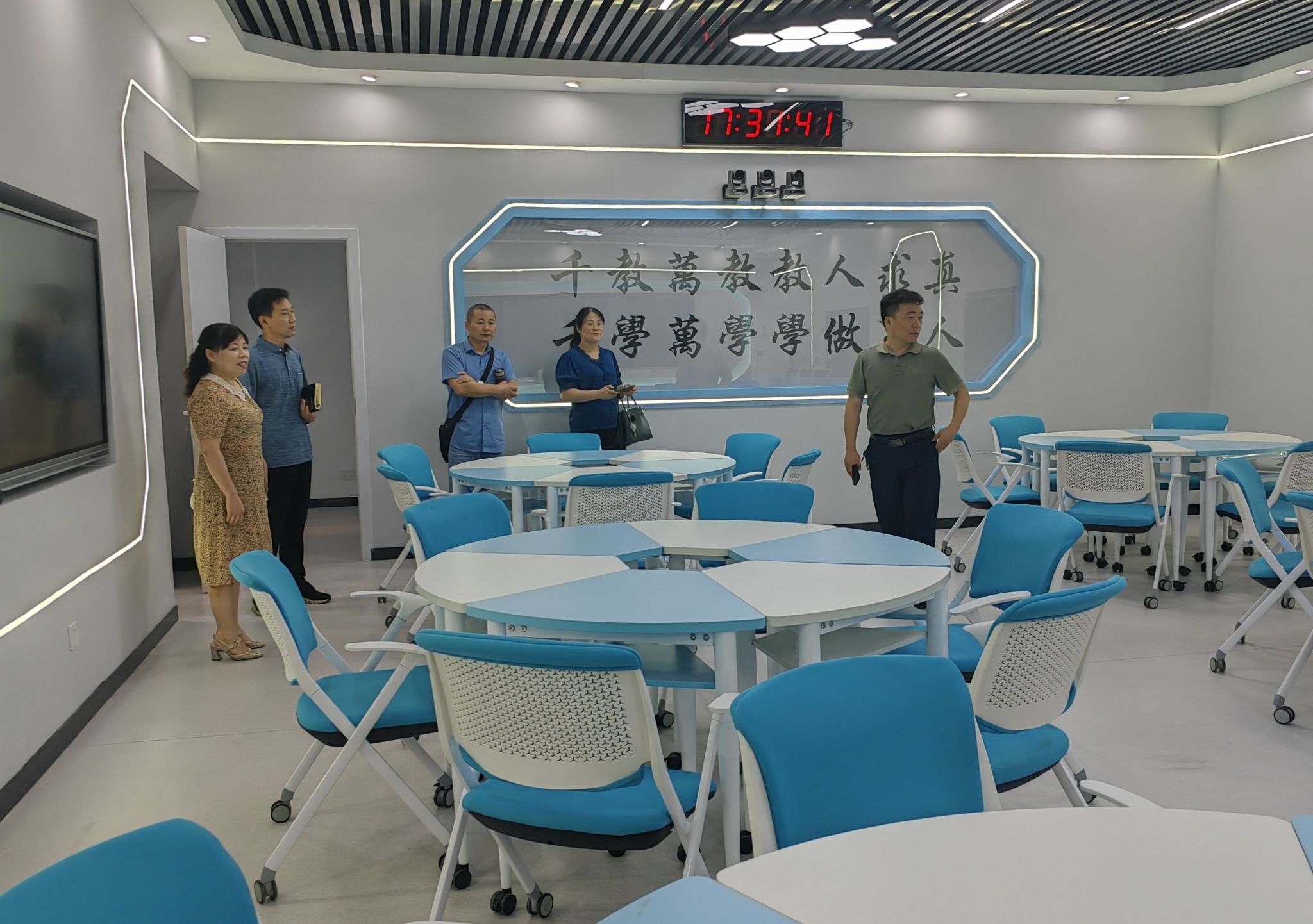 在我院党政领导的陪同下,李欢一行实地考察了我院省级实验实训中心、书写技能实训室、语音技能实训室、教师综合技能实训室、科学虚拟仿真实训室等实践教学场地。