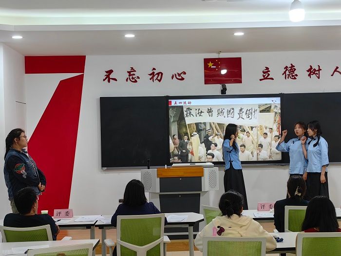 参赛选手围绕“新思想引领新征程,新青年建功新时代”的比赛主题,选取《习近平新时代中国特色社会主义思想概论》等四门思政课程中的有关章节或专题进行授课,展示自己以奋斗之青春担当民族复兴重任,书写“新青年建功新时代”的决心。同学们讲课形式灵活多样、逻辑框架清晰、教态自然亲和,展现出新时代大学生朝气蓬勃的精神风貌和良好的马克思主义理论素养。评委代表刘晓娟教授从教学设计、案例选择、授课方式等方面提出了改进建议,勉励学生热爱思政课、学好思政课。
