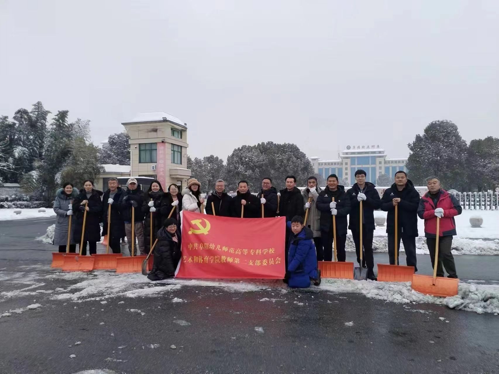 为积极应对雨雪冰冻天气,保障师生安全畅通出行,2月5日上午,艺术和体育学院党总支和机关党总支组织党员开展铲雪除冰活动。同志们纷纷拿起铁锹、铁铲、扫帚等劳动工具,来到学校门前的清河西路路面,集中开展除冰清雪行动。