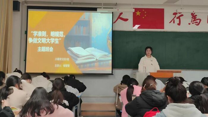 各班将规范学生行为习惯教育纳入“开学第一课”,通过班会课的形式,围绕“如何在日常生活中践行准则,培养文明行为和良好习惯”展开讨论,以引导学生将文明准则内化于心、外化于行,形成良好的校园风尚。