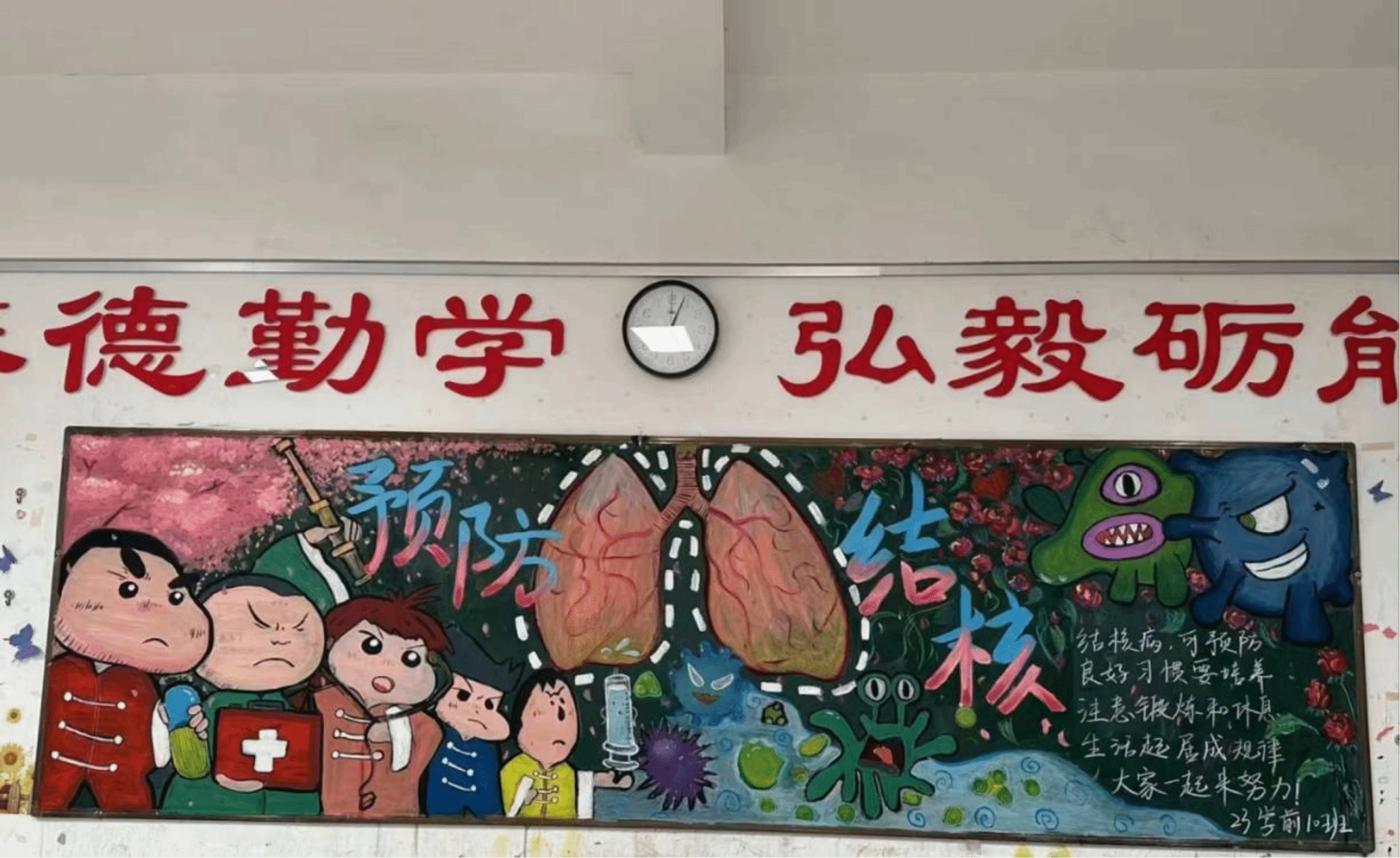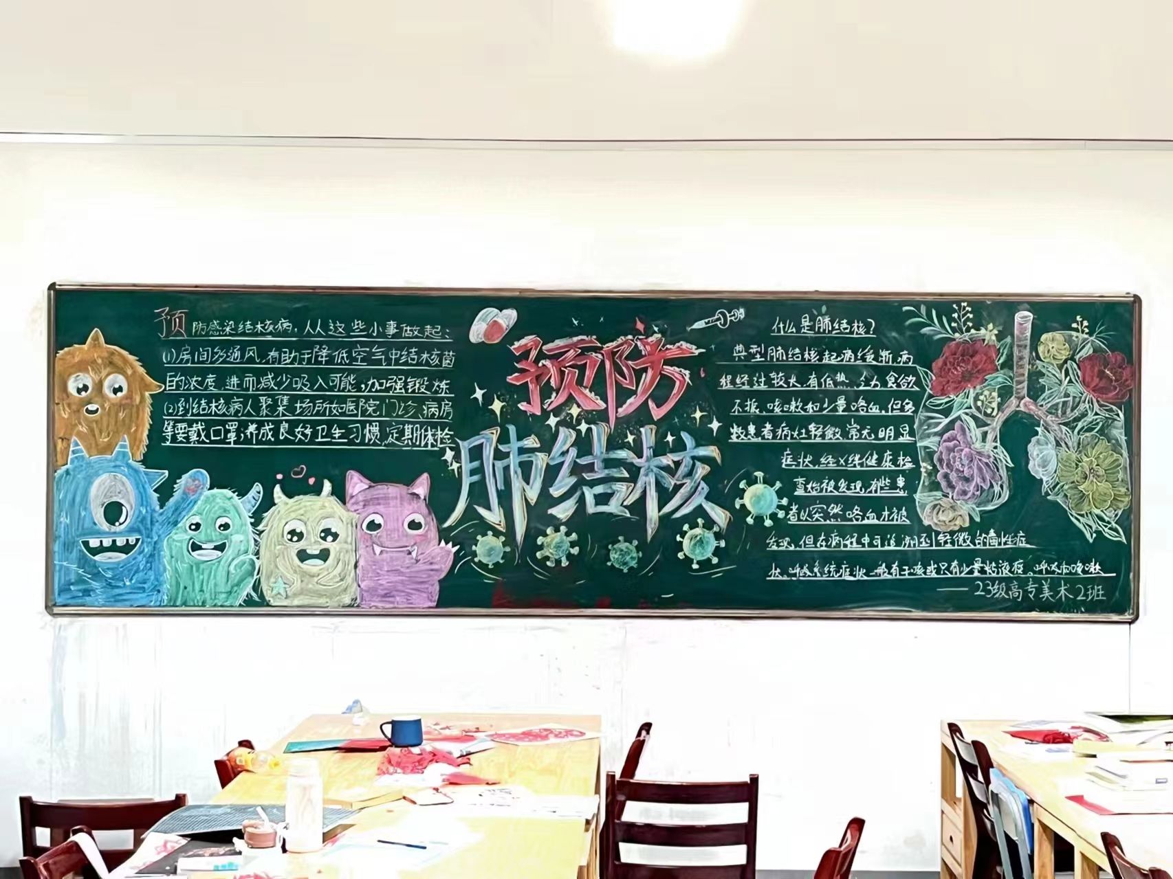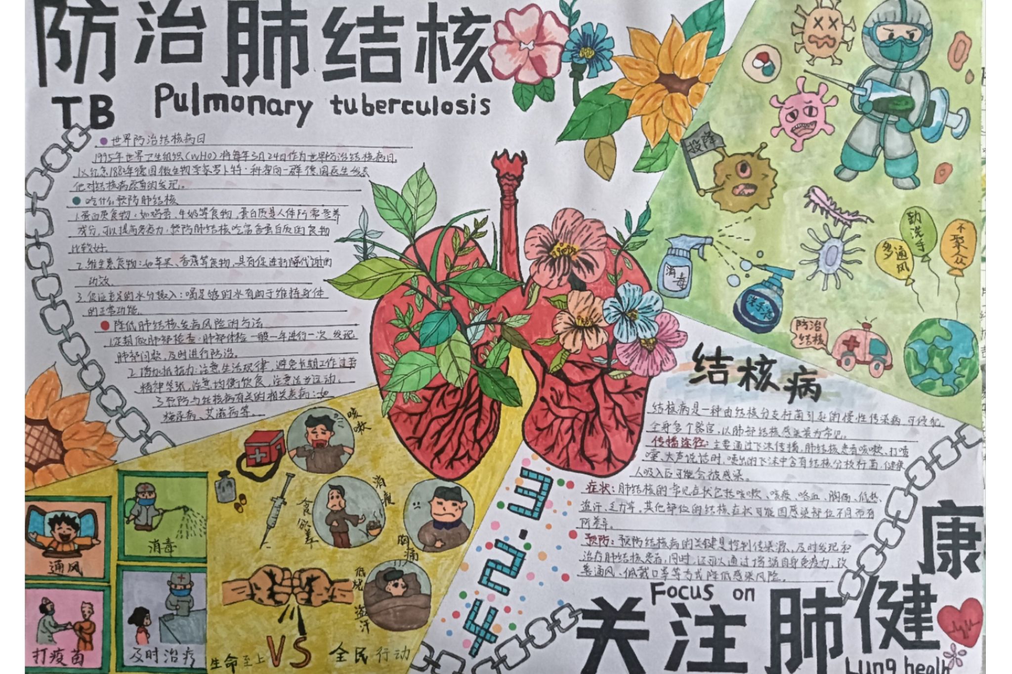 本次活动的开展,不单单只宣传了结核病的相关知识,还培养了同学们发现美创造美的动手能力。同时也提高了师生安全防范意识,为共创无结核健康校园奠定了基础。