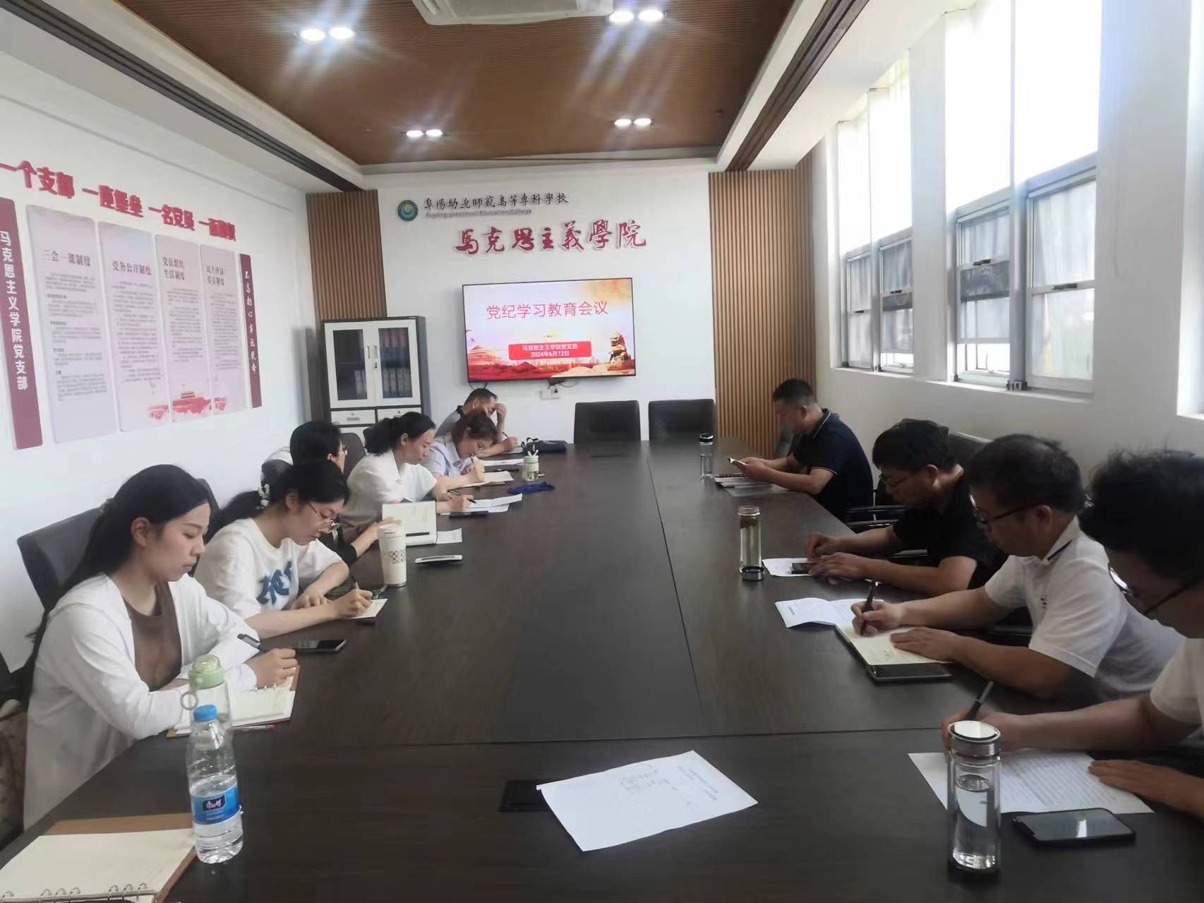 6月12日上午,马克思主义学院直属党支部召开党纪学习教育会。学院全体党员及教师参加。