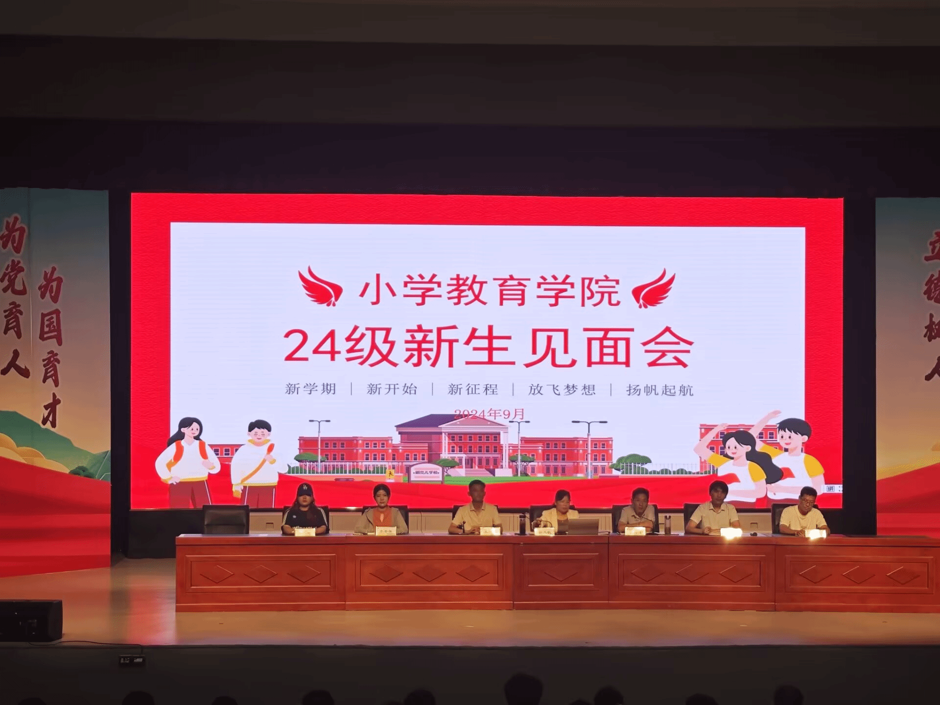 9月10日,小学教育学院在德馨楼演艺大厅举办了2024级新生见面会。学院院长郭玉敏、党总支书记朱启俊、副院长王敏锐、副书记魏琳及全体新生辅导员共同出席会议,与2024级全体新生欢聚一堂。