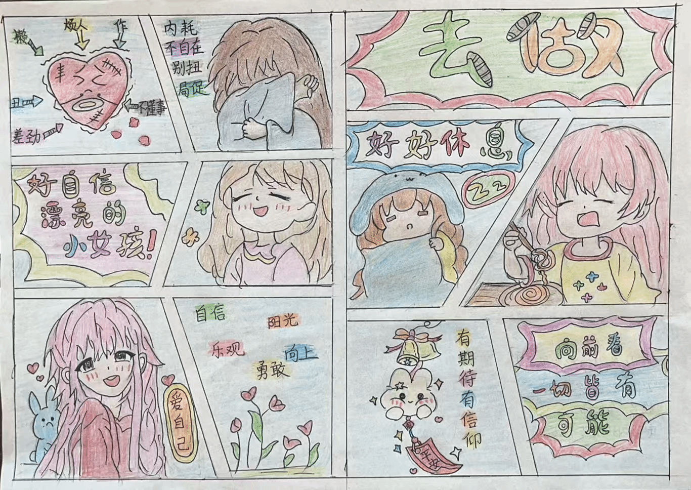 通过心理漫画创作,可促使学生利用漫画的形式,将内心那些或复杂、或隐秘的情绪尽情地抒发出来,进而实现自我认识,清晰地察觉到自身情绪根源以及心理状态;帮助自身调解情绪,让负面情绪得到宣泄,同时强化积极的心理暗示。下一步,学校将继续丰富心理育人内涵,开展丰富多彩、学生欢迎的心理活动。(图文:李嘉琪,初审:周振国,终审:范云峰)