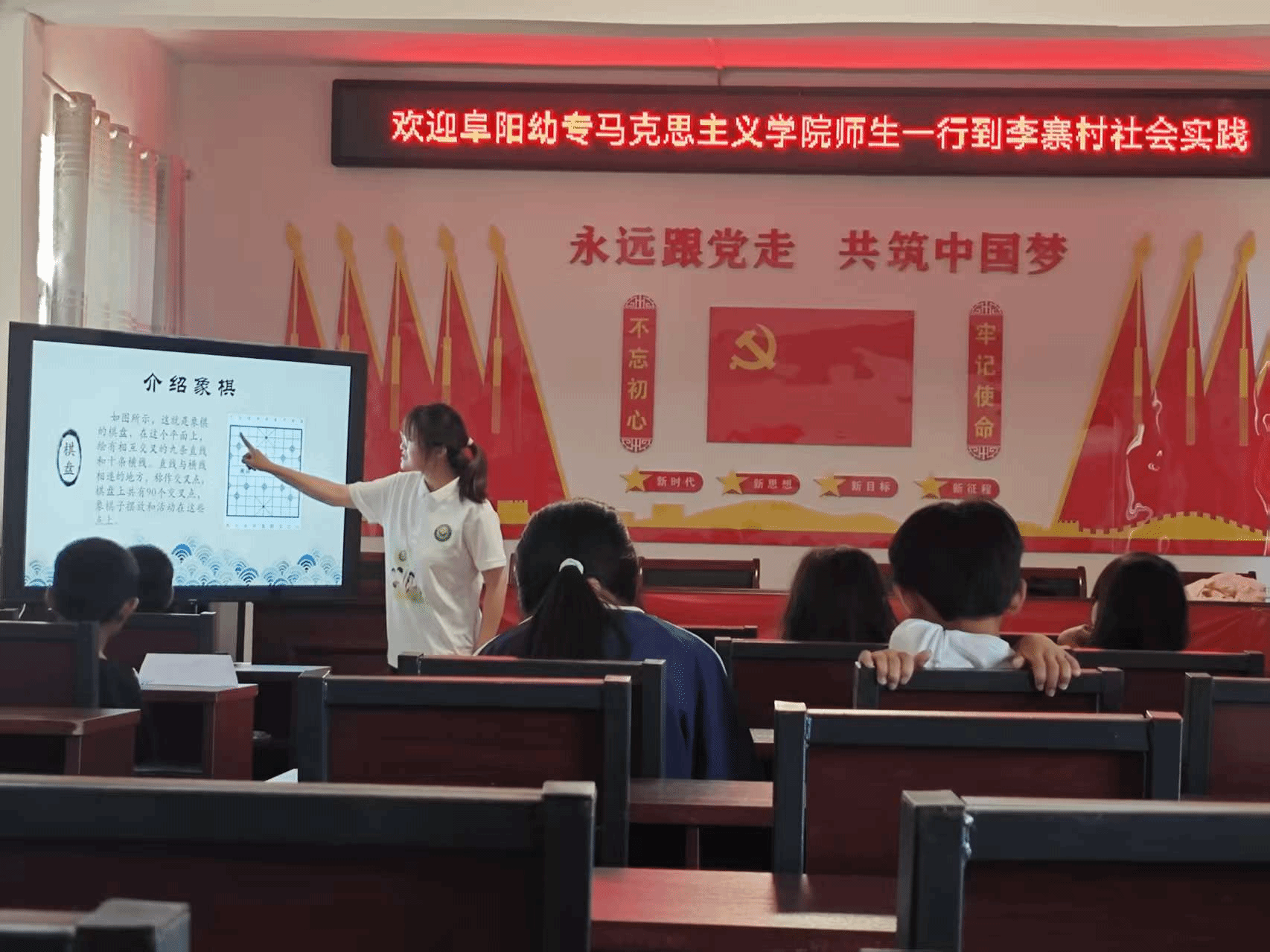 李寨村教学点中,姜成玲以象棋课开启思维启蒙,团队还通过教唱国歌厚植爱国情怀,用趣味故事普及防诈骗知识,并以折纸、室内游戏拉近与学生的距离。