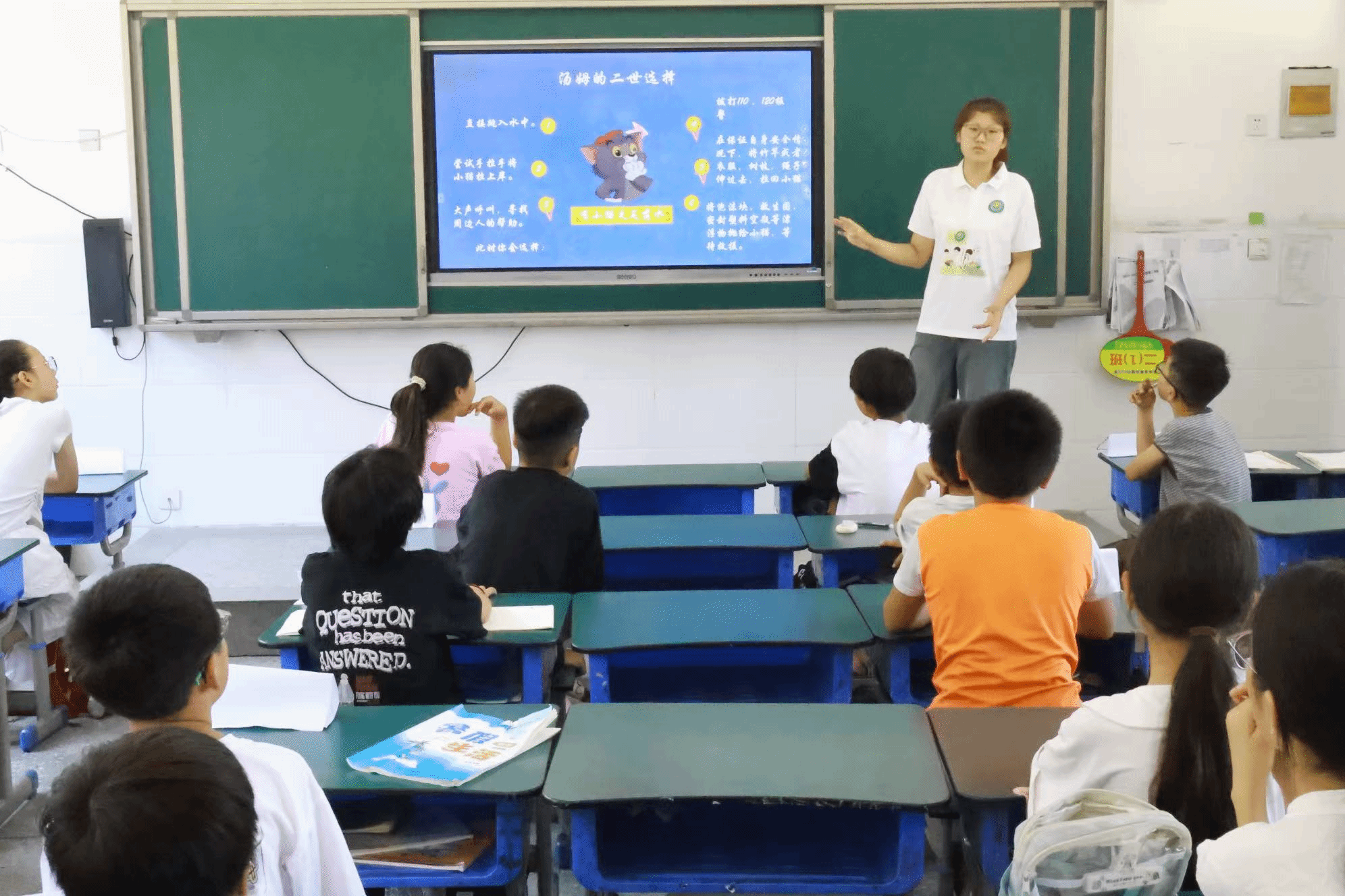 黄岗镇中心小学教学点,团队成员用生动有趣的方式为孩子们带来知识盛宴。队长赵晓彤以别出心裁的方式讲述《溺水小猫的重开人生》,从汤姆猫的第一视角出发,将防溺水安全知识巧妙融入故事中。让孩子们在欢乐中深刻认识到防溺水的重要性,有效增强了他们的安全防范意识。