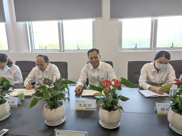 王显明一行以“马克思主义在阜阳的早期传播和影响”为主题与我院教师开展了深入研讨。座谈会上大家希望今后两家单位应进一步加强沟通交流,互相学习,借助虚拟仿真思政课体验教学中心,开展形式多样、特色鲜明、身临其境的党史学习教育活动,让更多党员干部重温党的百年峥嵘岁月,牢记共产党员的初心使命,共同谱写新时代华美篇章。
